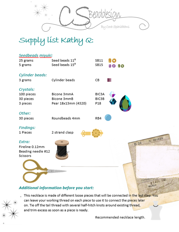 A kit includes: All the materials and findings to finish your necklace (aprox. 18inch / 45cm)